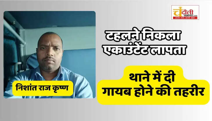 चंदौली जिले के पंडित दीनदयाल उपाध्याय रेल मंडल के कार्यालय में एकाउंटेंट के पद पर कार्य करने वाला एक 42 वर्ष युवक मंगलवार के रात से अपने आवास से गायब है। इससे परेशान पीड़ित के परिजनों ने उसके गायब होने की तहरीर थाने पर दे दी है।
