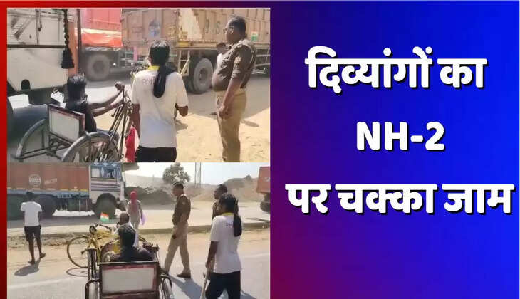 दिव्यांगों ने नेशनल हाईवे को किया जाम