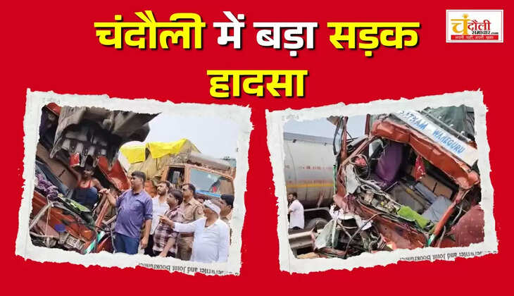 चंदौली में बड़ा सड़क हादसा, चालक-खलासी की पुलिस ने बचायी जान