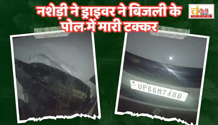 नशे में धुत ड्राइवर ने बिजली के खंभे में मारी टक्कर