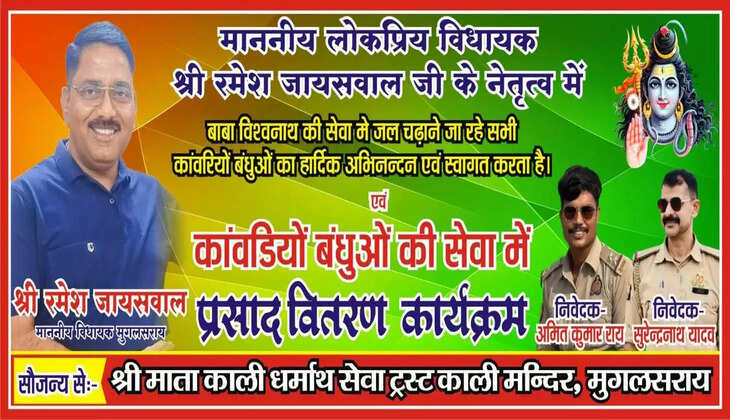 चंदौली जिले के फायर सेवा विभाग में तैनात दरोगा अमित कुमार राय और दीवान सुरेंद्रनाथ यादव इन दिनों सोशल मीडिया पर वायरल एक पोस्टर को लेकर विवादों में हैं। मामला मुगलसराय क्षेत्र में श्रावण मास के दौरान कांवड़ियों की सेवा के लिए लगाए गए एक बैनर से जुड़ा है, जिसमें दोनों पुलिसकर्मियों की वर्दीधारी तस्वीरें ‘निवेदक’ के रूप में दिखाई गई हैं।