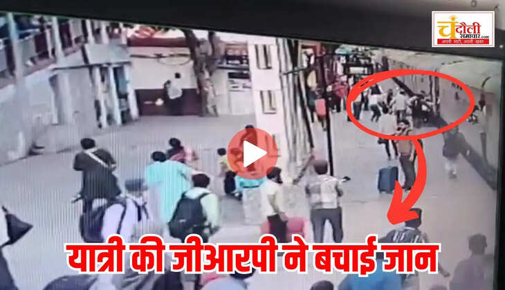 चलती हुई ट्रेन से गिरे रहे यात्री की सिपाहियों ने बचायी जान, देखिए डीडीयू जंक्शन का वीडियो