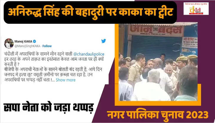 आपको बता दें कि बृहस्पतिवार को शाम के दौरान पूर्व चेयरमैन के पुत्र के साथ कुछ बात को लेकर कूड़ा बाजार चौकी इंचार्ज से बहस होने लगी। वही सीओ अनिरुद्ध सिंह ने समझाने का प्रयास किया। जिससे सीओ अनिरुद्ध सिंह ने समाजवादी पार्टी के पूर्व चेयरमैन के पुत्र को जोरदार थप्पड़ जड़ दिया। थप्पड़ लगने की वजह से पूर्व चेयरमैन के पुत्र गिर गए। जिसको लेकर शुक्रवार को सपा के राष्ट्रीय प्रवक्ता मनोज काका ने ट्वीट कर चंदौली पुलिस पर सवाल उठाए हैं।