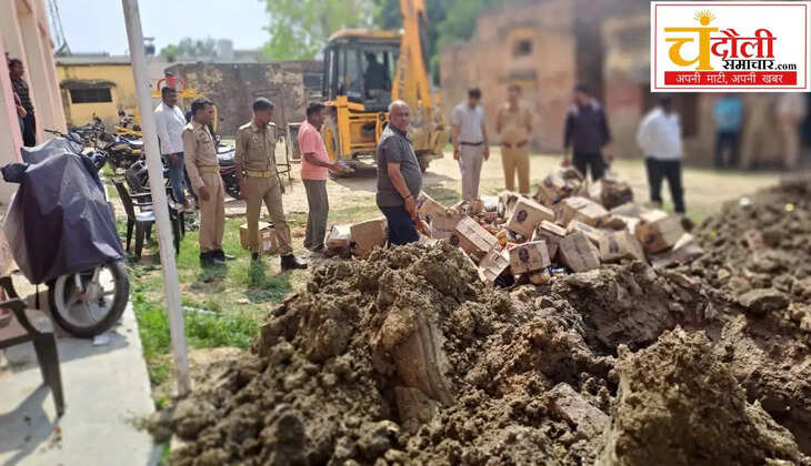 चंदौली जिले की मुगलसराय पुलिस ने न्यायालय के आदेश पर बड़ी कार्रवाई करते हुए मालखाने में जमा 1709 लीटर अवैध शराब को जेसीबी से गड्ढा खोदकर नष्ट कर दिया। यह शराब वर्ष 2024 और 2025 के कुल 43 आबकारी मुकदमों से संबंधित थी।