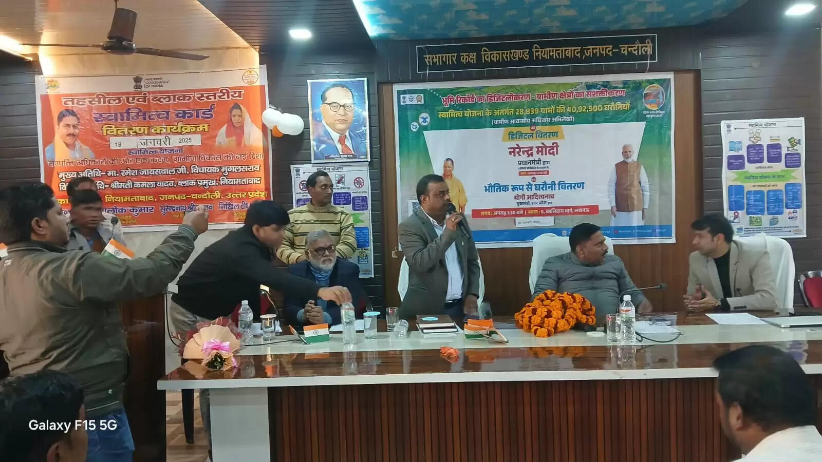 मुगलसराय विधानसभा में दुर्व्यवस्था के बीच घरौनी का वितरण, कार्यक्रम में खराब हो गया जनरेटर