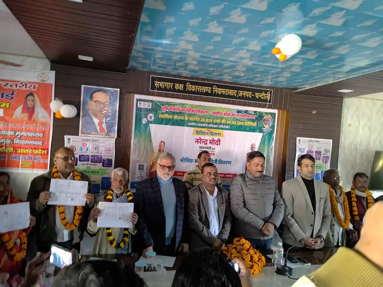 कार्यक्रम का शुभारंभ मुगलसराय विधायक रमेश जायसवाल के करकमलों द्वारा दीप प्रज्वलन कर किया गया। इस अवसर पर विधायक द्वारा लाभार्थियों को फूल माला से स्वागत कर घरौनियों का वितरण किया गया।इसी तरह के कार्यक्रम ग्राम पंचायत स्तर पर भी करते हुए तहसील क्षेत्र में कुल 1171 लाभार्थियों को घरौनी सम्पत्ति कार्ड का वितरण किया गया।