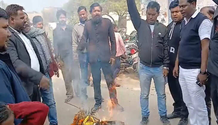 मुगलसराय विधायक रमेश जायसवाल का पुतला फूंका, विधायक के खिलाफ अधिवक्ताओं ने जमकर नारेबाजी