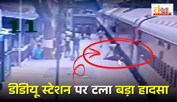 चंदौली जनपद स्थित डीडीयू स्टेशन पर मंगलवार को एक बड़ा हादसा होने से बच गया। डीडीयू स्टेशन के प्लेटफार्म संख्या 3 पर चलती ट्रेन में चढ़ने की प्रयास में एक महिला, ट्रेन और प्लेटफार्म के बीच बने गैप में गिर गयी। मौके पर तैनात आरपीएफ जवान ने चीते जैसी फुर्ती दिखाई और महिला को पकड़ लिया। इस दौरान अन्य यात्री भी महिला के मदद को पहुंच गए, जिससे महिला की जान बच पाई। बाद में महिला को प्राथमिक उपचार देकर आगे के लिए रवाना किया गया। इस दौरान प्लेटफार्म पर अफरा-तफरी का माहौल रहा।