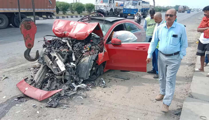 कार ने किनारे खड़ी हाइवा में मारी जोरदार टक्कर