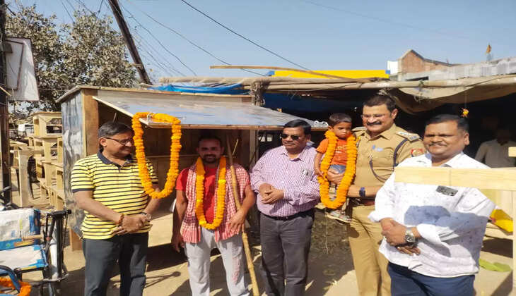 सीओ अनिरुद्ध सिंह ने अपने हाथों से दिव्यांग व्यक्ति को रोजगार के लिए सौंपी गुमटी
