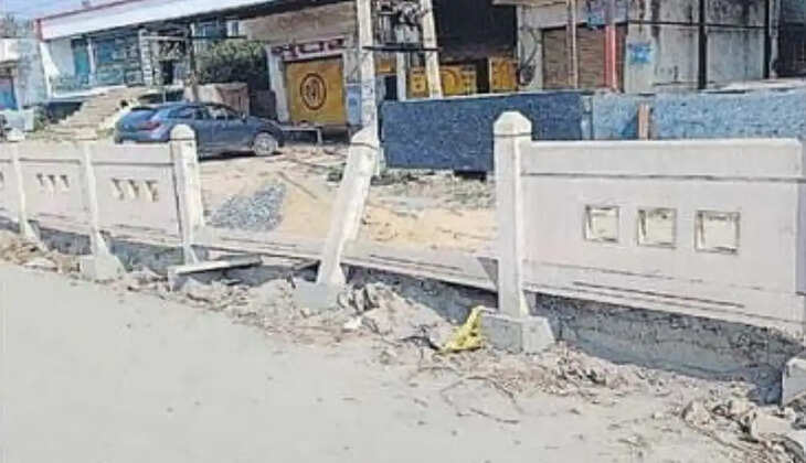 निर्माण पूरा होने से पहले ही कई स्थानों पर टूटी रेलिंग