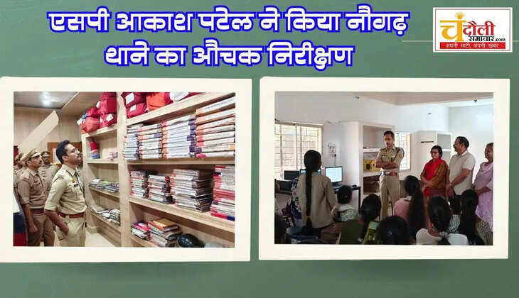 चंदौली के पुलिस अधीक्षक आकाश पटेल ने नौगढ़ थाने का औचक निरीक्षण किया। इस दौरान उन्होंने मिशन शक्ति केंद्र की एसओपी (SOP) में खामी मिलने पर प्रभारी निरीक्षक को कड़ी चेतावनी दी। साथ ही, 'यक्ष ऐप' के जरिए डिजिटल पुलिसिंग को सुदृढ़ करने के सख्त निर्देश दिए।