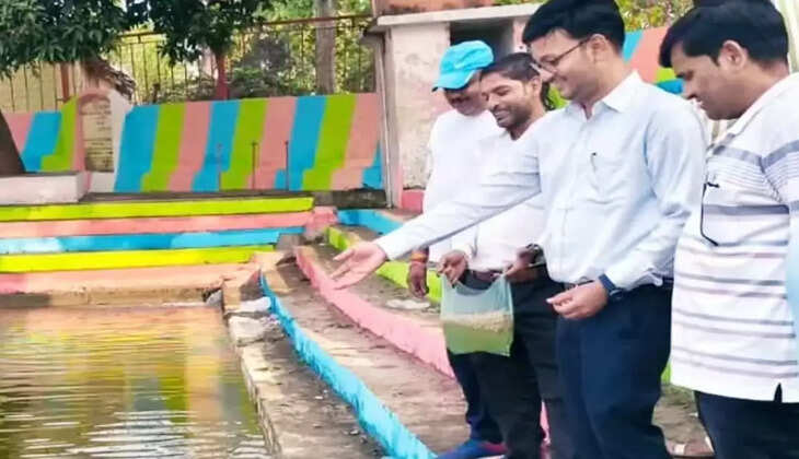 खंड विकास अधिकारी ने मछलियों को खिलाया चारा