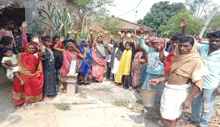 हैंडपंप से गंदा पानी निकलने के विरोध में ग्रामीणों ने किया प्रदर्शन, जयमोहनी गांव में दूषित पानी पीने से बीमार हैं कई बच्चे