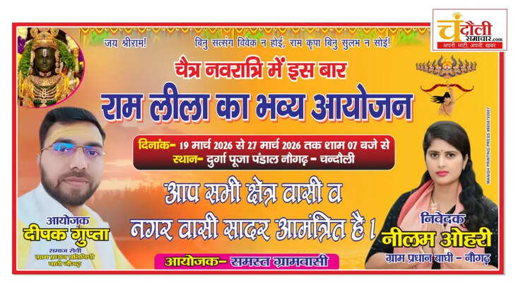 चन्दौली के नौगढ़ में ढाई दशक बाद रामलीला की गौरवशाली परंपरा लौटने वाली है। ग्राम प्रधान नीलम ओहरी के प्रयासों से चैत्र नवरात्रि के दौरान 19 से 27 मार्च तक प्रभु श्रीराम के आदर्शों का जीवंत मंचन होगा।