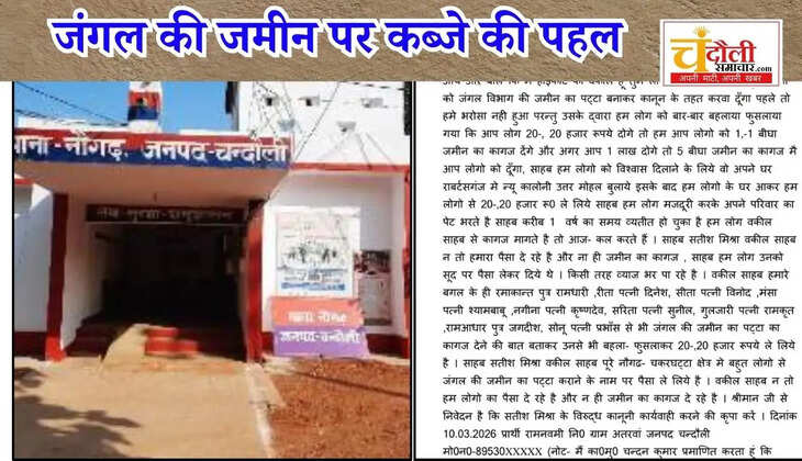 चंदौला के नौगढ़ में खुद को हाईकोर्ट का वकील बताने वाले शख्स ने ग्रामीणों को जंगल की जमीन का पट्टा दिलाने के नाम पर लाखों की ठगी की। रेंजर अमित श्रीवास्तव की सख्ती के बाद इस बड़े फर्जीवाड़े का खुलासा हुआ है।