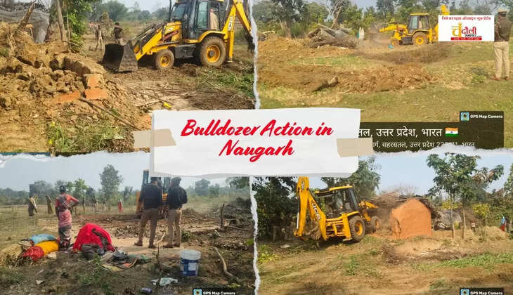 नौगढ़ में रेंजर का तगड़ा बुलडोज़र एक्शन, जंगल के बीच झोपड़ियां और घर गिराए गए