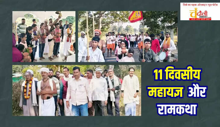 चंदौली जिले की नौगढ़ तहसील के राजदरी-देवदरी क्षेत्र स्थित चोरमरवा के योग माया आश्रम में भक्ति और आध्यात्म का अनूठा संगम देखने को मिल रहा है। शुक्रवार को आश्रम से भव्य डमरू शोभायात्रा और कलश यात्रा के साथ 11 दिवसीय महायज्ञ व रामकथा का विधि-विधान से शुभारंभ हुआ। इस अवसर पर आश्रम के महाराज प्रदीपानंद महाराज ने मानवता को तप, संयम और सेवा का मार्ग अपनाने का संदेश दिया।