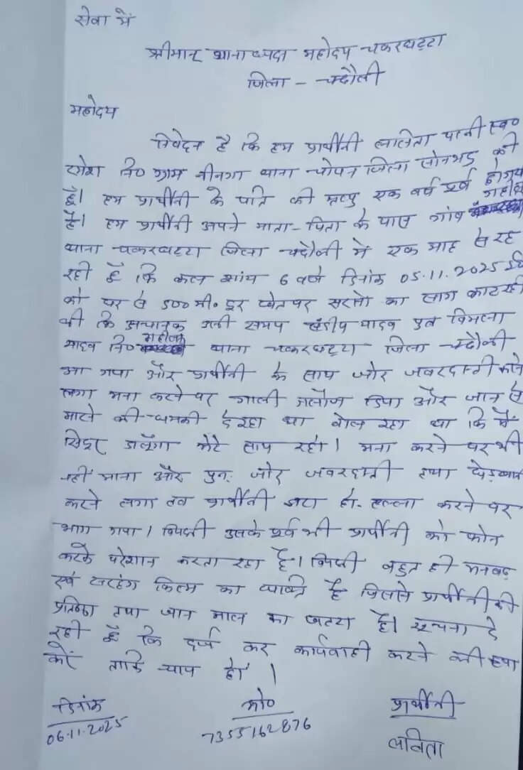 चंदौली जिले के तहसील नौगढ़ में चकरघट्टा थाना क्षेत्र में गहिला गांव में एक विधवा महिला की शिकायत ने पुलिस की संवेदनहीनता और मनबढ़ रवैये को उजागर किया है। पीड़िता का पति सड़क दुर्घटना में मारा गया और वह अब अपने मायके में रह रही है। इसीलिए गांव का एक मनबढ़ युवक उसे लगातार मोबाइल और व्हाट्सएप कॉल से परेशान कर रहा है, उसने एक दिन मौका पाकर सुनसान जगह पर सिंदूर डालने के लिए पीछा किया। महिला ने थाने जाकर गुहार लगाई तो पुलिस ने उसे पीला पन्ना थमा दिया और अब बताया जा रहा है कि महिला “मेंटल” है।