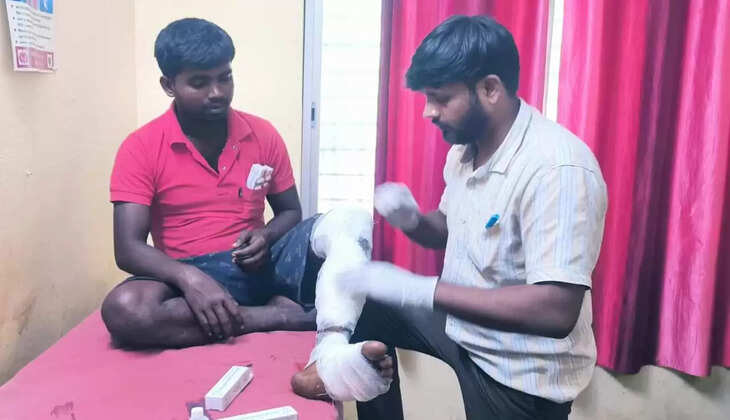 नैया मरम्मत कर रहे विकास बिंद के पैर पर गिरा तारकोल