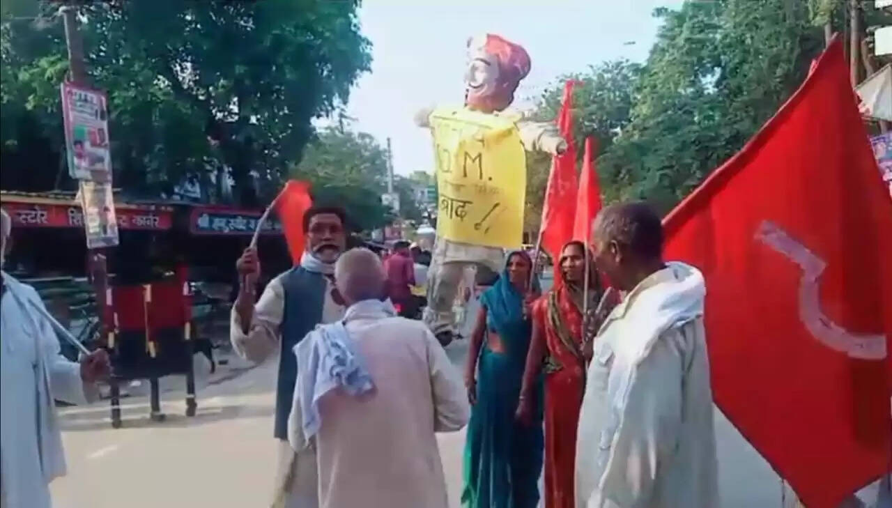 धानापुर इलाके में अखिल भारतीय किसान महासभा नेता कामरेड श्रवण मौर्य के नेतृत्व में पुतला दहन कार्यक्रम के दौरान पुलिस से तीखी छीना-झपटी हुई, जिसमें पुलिस पुतला छीनकर भाग गई।