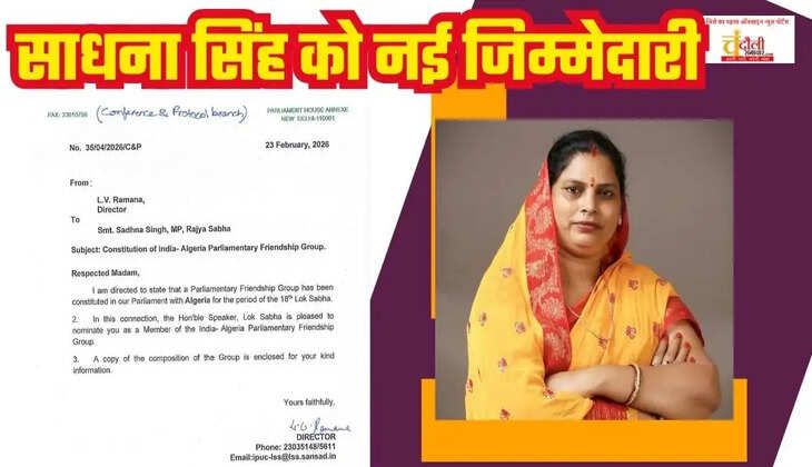 राज्यसभा सांसद साधना सिंह को भारत–अल्जीरिया संसदीय मैत्री समूह का सदस्य नामित किया गया है। उन्होंने इसे गर्व और दायित्व बताया तथा प्रधानमंत्री और लोकसभा अध्यक्ष के प्रति आभार व्यक्त किया।