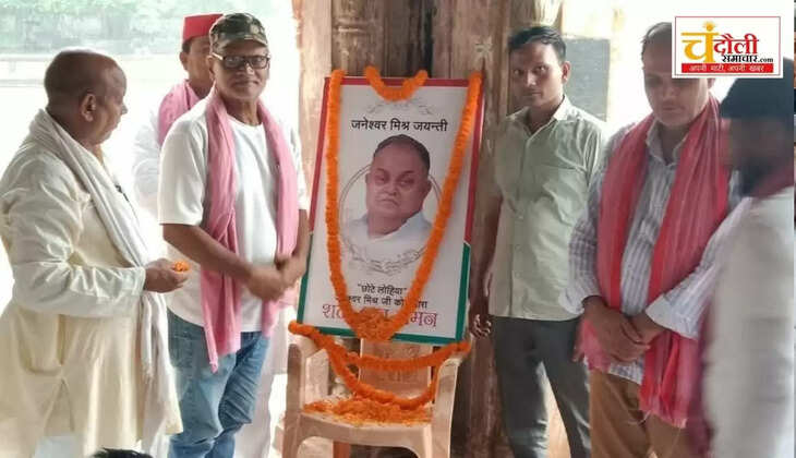 चंदौली जिले के चकिया में समाजवादी पार्टी के प्रख्यात नेता और विचारक जनेश्वर मिश्रा की 93वीं जयंती मंगलवार को चकिया नगर के वार्ड नंबर 5 स्थित मां काली मंदिर परिसर की बारादरी में श्रद्धा और सम्मान के साथ मनाई गई। कार्यक्रम की शुरुआत जनेश्वर मिश्रा के चित्र पर पुष्प अर्पित कर और श्रद्धांजलि देकर की गई।