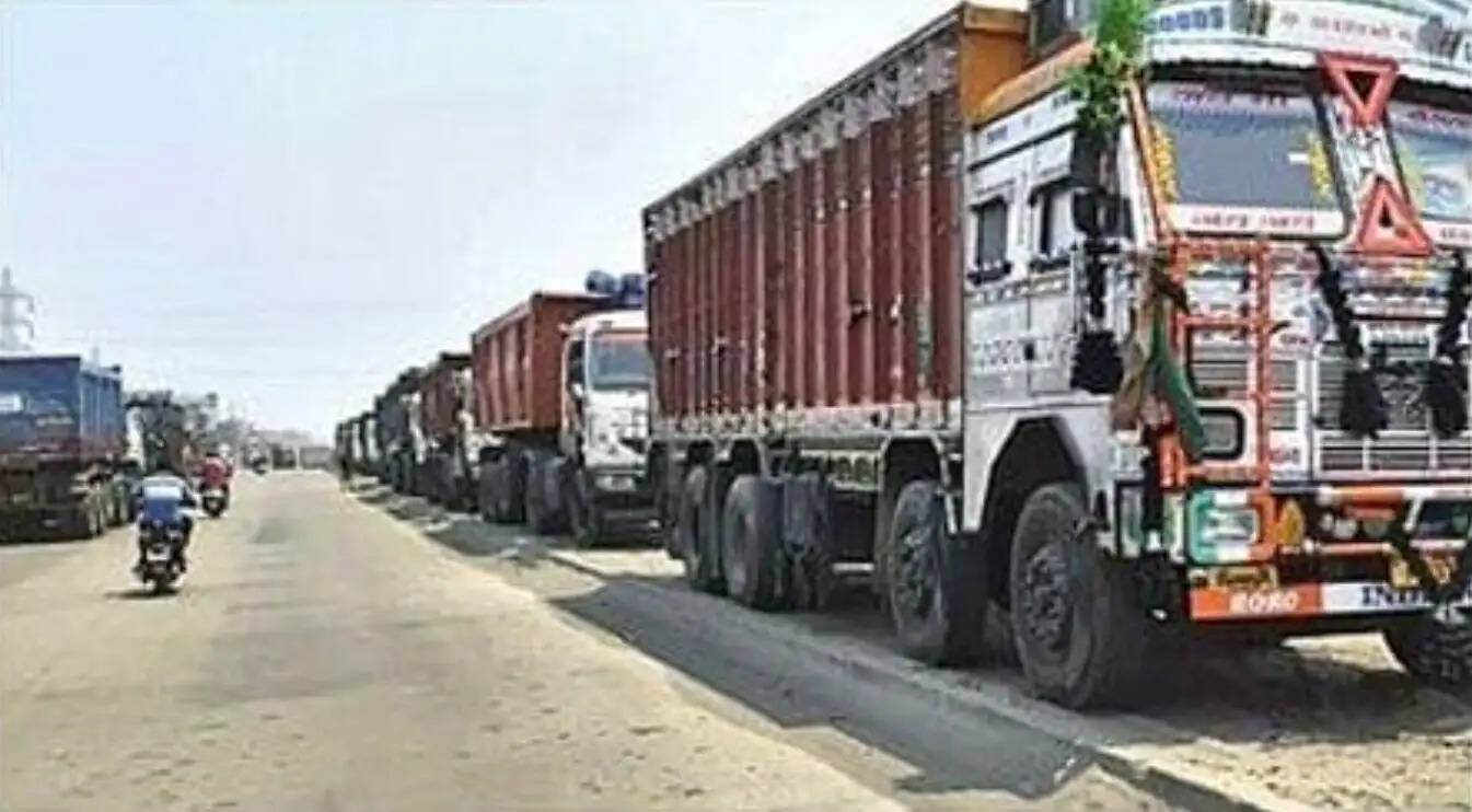 सिक्स लेन-सर्विस लेन और डिवाइडर पर ट्रकों की लग रही 11 लाइनें