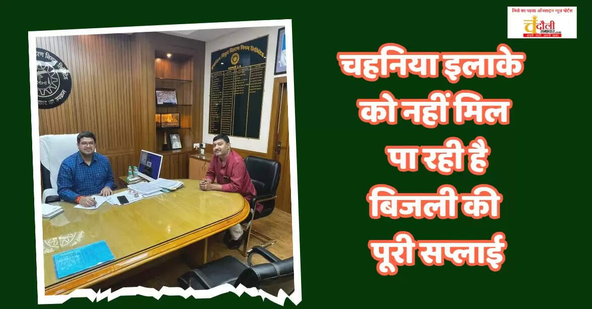 चंदौली जिले के चहनियां क्षेत्र में बिजली की समस्या को लेकर सहकारी समिति नादी के प्रतिनिधि अजीत सिंह बुधवार को वाराणसी स्थित बिजली विभाग के एमडी शंभु कुमार से मुलाकात कर बिजली की कटौती व फाल्ट का मुख्य कारण बताया। मंगलवार को वे ऊर्जा मंत्री से भी मिले थे, जिसके बाद ऊर्जा मंत्री व एमडी ने जल्द समस्या को दूर करने का आश्वासन दिया है।