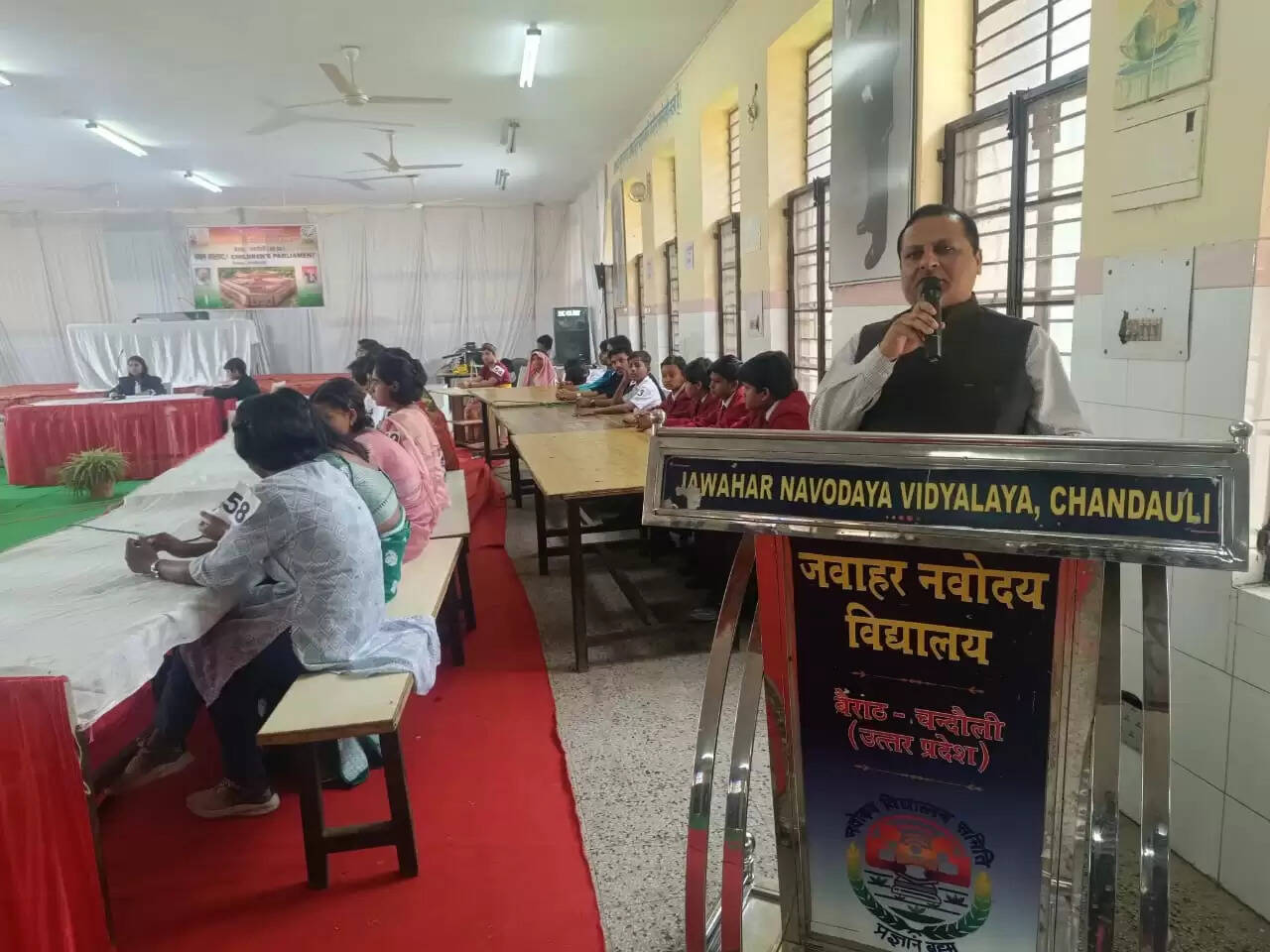 चंदौली जिले के पीएम श्री स्कूल जवाहर नवोदय विद्यालय बैराठ में बाल संसद का आयोजन किया गया। कार्यक्रम का उद्घाटन करते हुए प्राचार्य संजय मिश्र ने किया। इस दौरान प्राचार्य संजय मिश्र ने बच्चों की प्रतिभा और ऐसे कार्यक्रमों की उपयोगिता पर प्रकाश डाला।