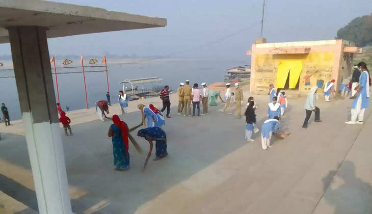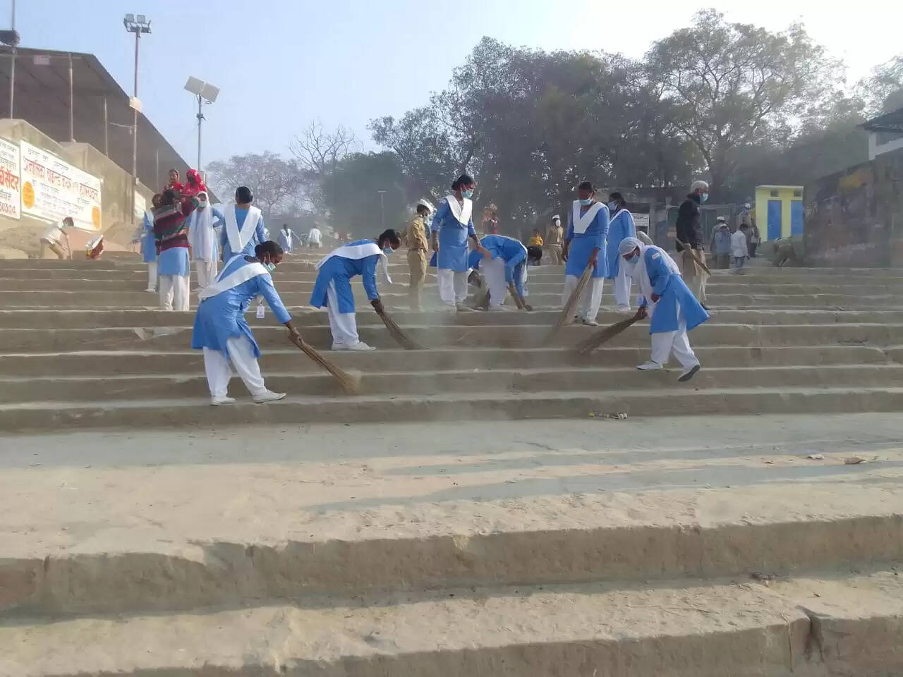 "स्वच्छ जल, स्वच्छ मन" अभियान के तहत गंगा घाट की सफाई