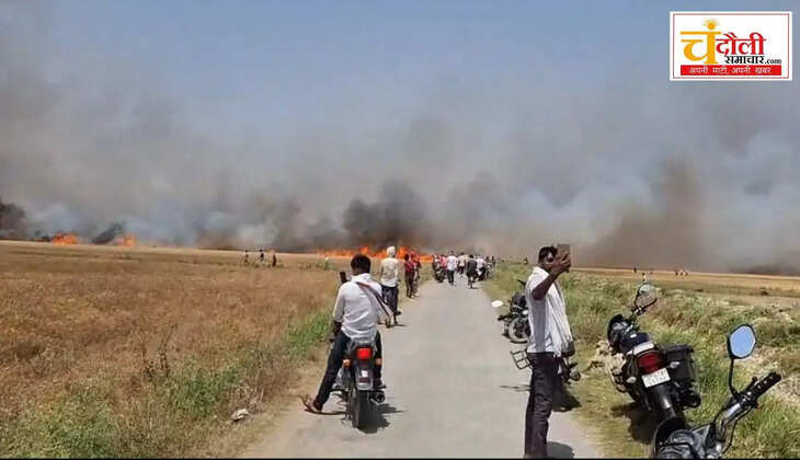 चंदौली के सकलडीहा क्षेत्र में भीषण आग से 20-30 एकड़ गेहूं की फसल जल गई। तेज हवा से आग तेजी से फैली, जिससे कई किसानों को भारी नुकसान हुआ और मुआवजे की मांग उठी।
