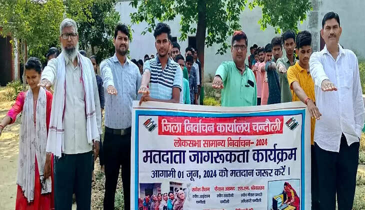 एक जून को मतदान की ग्रामीणों और छात्र-छात्राओं को दिलाई शपथ, जारी है चंदौली लोकसभा में जागरूकता अभियान