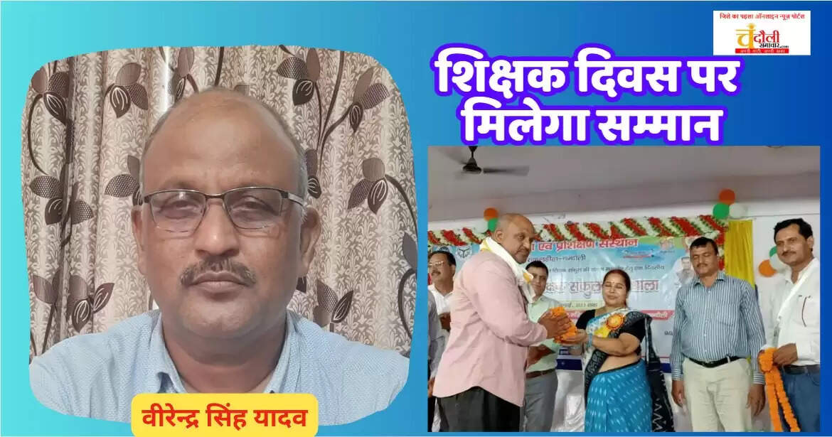 चंदौली जिले के चहनिया विकासखंड के कंपोजिट विद्यालय हृदयपुर में प्रभारी प्रधानाध्यापक के पद पर कार्यरत वीरेंद्र सिंह यादव को राज्य शिक्षक पुरस्कार 2022 मिलने पर शिक्षकों में हर्ष की लहर व्याप्त हो गई।