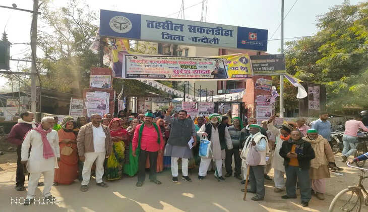 आपको बता दें कि जनपद के सकलडीहा तहसील मुख्यालय पर किसानों व महिलाओं की समस्या को लेकर कांग्रेस के प्रदेश महासचिव देवेंद्र प्रताप सिंह मुन्ना के नेतृत्व में भारतीय किसान यूनियन के पदाधिकारियों व क्षेत्रीय किसानों व महिलाओं ने सैकड़ों की संख्या में तहसील मुख्यालय का घेराव किया व धरना प्रदर्शन किया।