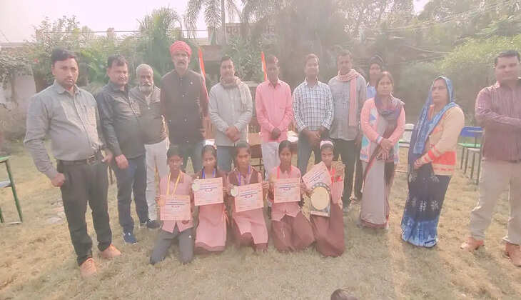 विगत दिनों जिला स्तरीय खेलकूद प्रतियोगिता में 200 मी 400 मी दौड़ और लंबी कूद में प्रथम स्थान प्राप्त प्राथमिक वर्ग की बालिका आंचल मौर्य को प्रमाण पत्र और चैम्पियन सिप देकर मुंह मीठा किया गया । इसके साथ ही लंबी कूद में अंकित कुमार प्राथमिक बालक वर्ग तृतीय स्थान को प्रमाण पत्र कुश्ती में 30 से 35 भार वर्ग में गरिमा, द्वितीय स्थान प्राप्त को मेडल तथा प्रमाण पत्र35 से 40 भार वर्ग में अलका, प्रथम को मेडल तथा प्रमाण पत्र40 से 45 भार वर्ग में सिंपल यादव, द्वितीय स्थान प्राप्त को प्रमाण पत्र दिया गया।