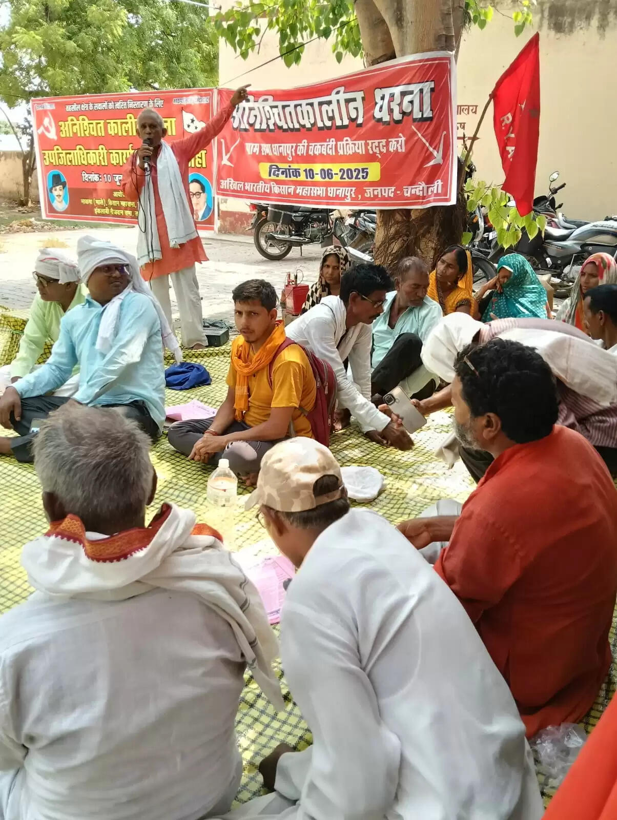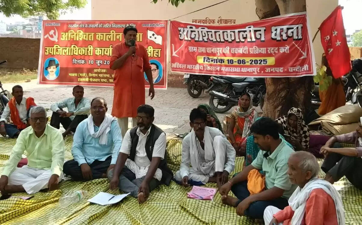 चंदौली जिल के सकलडीहा तहसील परिसर में भाकपा (माले) के नेतृत्व में 23 सूत्रीय मांगों को लेकर शुरू हुआ अनिश्चितकालीन धरना बुधवार को दूसरे दिन भी जारी रहा। धरने में बड़ी संख्या में ग्रामीण और किसान शामिल हुए। प्रदर्शनकारियों ने आरोप लगाया कि वर्षों से लंबित स्थानीय समस्याओं पर प्रशासन और सरकार आंख मूंदे बैठी है।