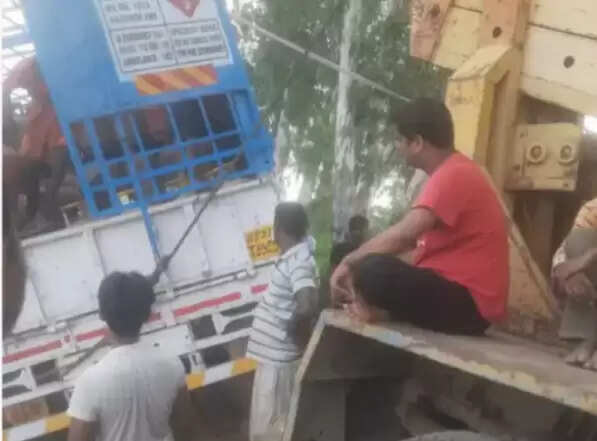 धानापुर में सिलेंडर से लदा ट्रक नहर की ओर झुका, ड्राइवर की सूझबूझ से टला बड़ा हादसा