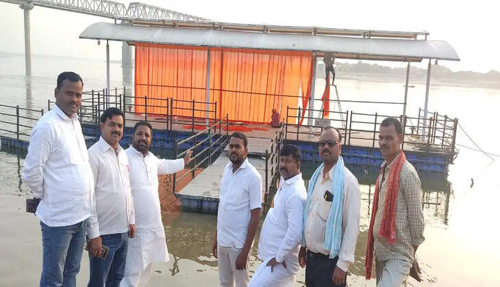 बलुआ स्थित पश्चिम वाहिनीं गंगा तट पर देव दीपावली की तैयारी तेज,जेट्टी पर बन रहा मंच