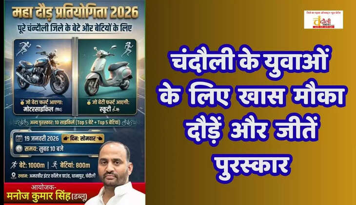 चंदौली जनपद के युवाओं में खेल के प्रति जोश भरने और उनकी प्रतिभा को एक नई पहचान देने के उद्देश्य से आज, 19 जनवरी 2026 को धानापुर के अमर वीर इंटर कॉलेज में एक ऐतिहासिक दौड़ प्रतियोगिता का आयोजन किया जा रहा है। सोमवार प्रातः 10 बजे से शुरू होने वाली इस 1000 मीटर की दौड़ को लेकर पूरे क्षेत्र में जबरदस्त उत्साह का माहौल है।