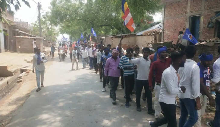 बहेरी गांव में भीमराव अम्बेडकर की जयंती पर ग्रामी णों ने निकाला जुलुस, पुलिस कर रही थी सुरक्षा