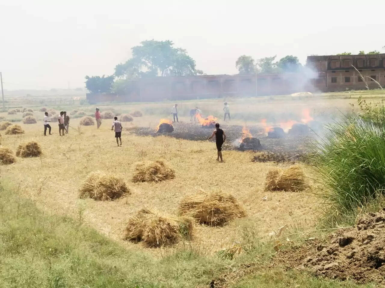 धानापुर के अमादपुर गांव में लगी आग से सैकड़ों बोझ गेहूं जलकर राख, फसल नुकसान से किसान बेहाल