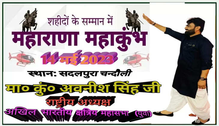 आपको बता दें कि अखिल भारतीय क्षत्रिय महासभा (युवा) के तरफ़ से 14 मई 2023 को जिला चन्दौली के ग्राम सदलपुरा में होने वाली महाराणा महाकुंभ को लेकर अखिल भारतीय क्षत्रिय महासभा (युवा) के प्रदेश अध्यक्ष भूपेन्द्र प्रताप सिंह ने ऐलान किया है। साथ ही बताया है कि महाराणा महाकुंभ का मकसद है कि शहीद और देश के लिए जान देने वाले लोगों के परिवारों को सम्मानित करना। देश के लिए स्वतंत्रता सेनानियों के परिवारों को भी सम्मान दिया जाएगा।