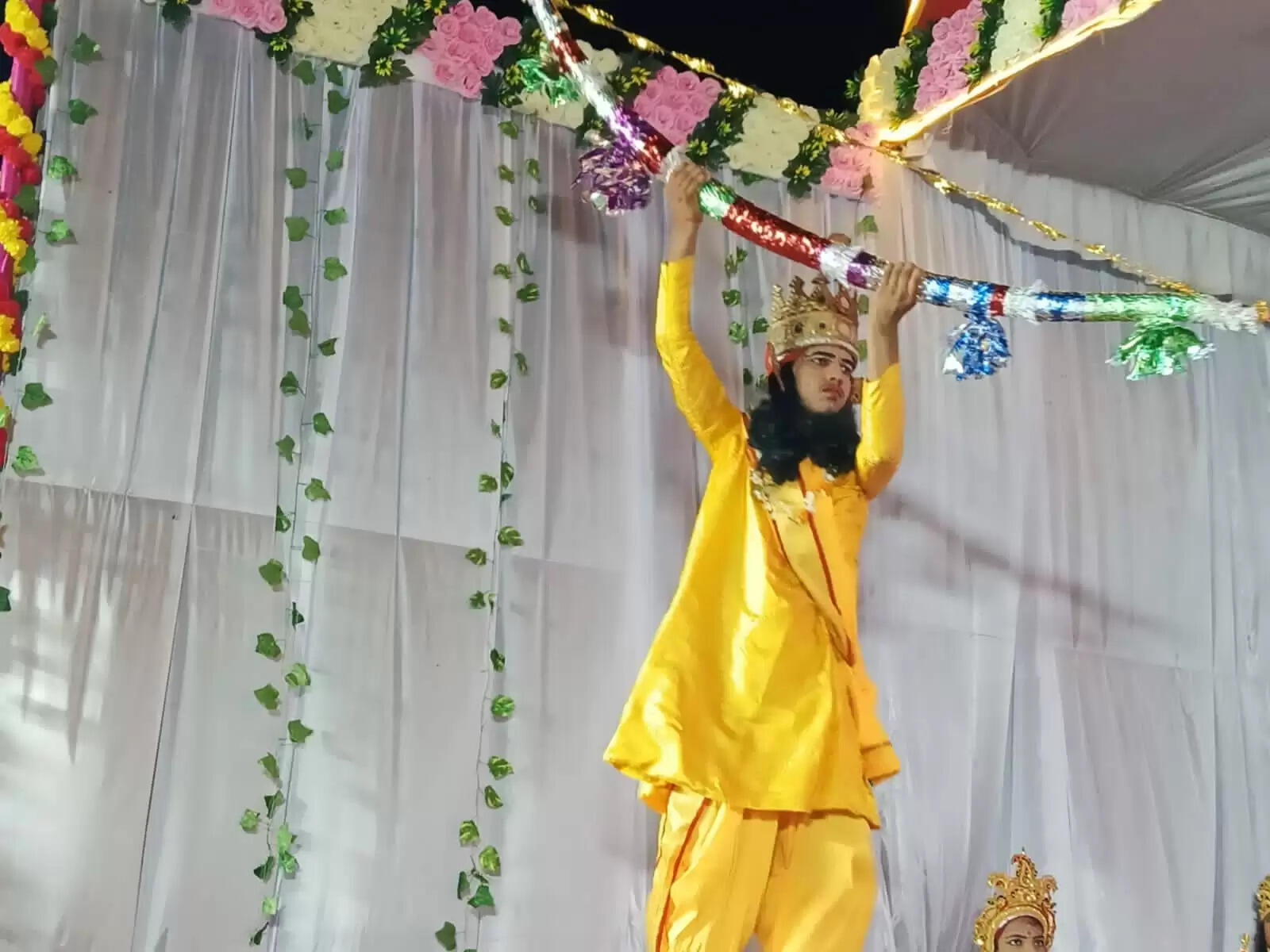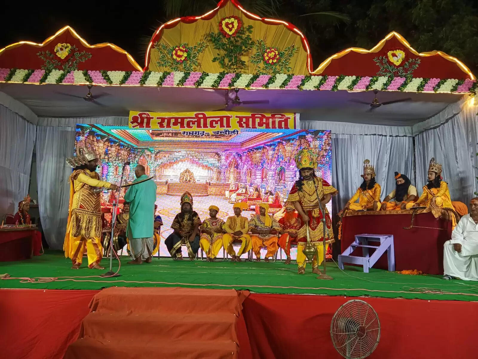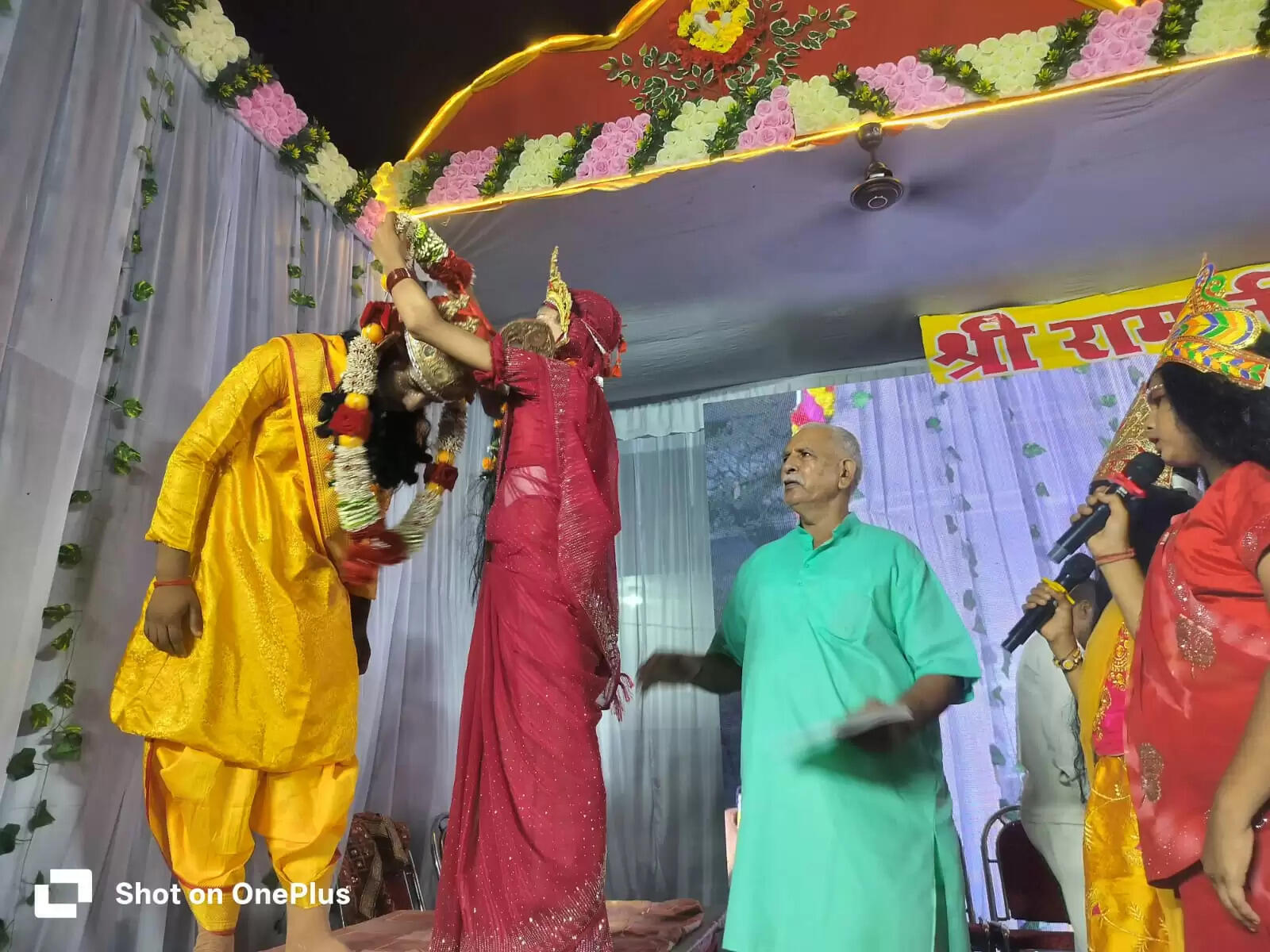 रामलीला मंचन के दौरान, जब राजा जनक द्वारा आयोजित सीता स्वयंवर में दूर-दूर से आए कोई भी राजा शिव धनुष को हिला भी नहीं सके, तो राजा जनक अत्यंत दुखी हुए। गुरु विश्वामित्र की आज्ञा पाकर, भगवान श्रीराम ने मंच पर कदम रखा। उन्होंने सहजता से शिव धनुष को उठाया और पल भर में उसे खंड-खंड कर दिया। धनुष के टूटते ही पूरा पंडाल "जय श्रीराम" के उद्घोष से गूंज उठा। इसके बाद, माता सीता ने आगे बढ़कर श्रीराम के गले में वरमाला डाली, और इस तरह स्वयंवर संपन्न हुआ।