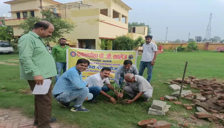 सकलडीहा पीजी कॉलेज में लगाए गए पौधे, एक पेड़ माँ के नाम कार्यक्रम का शुभारंभ