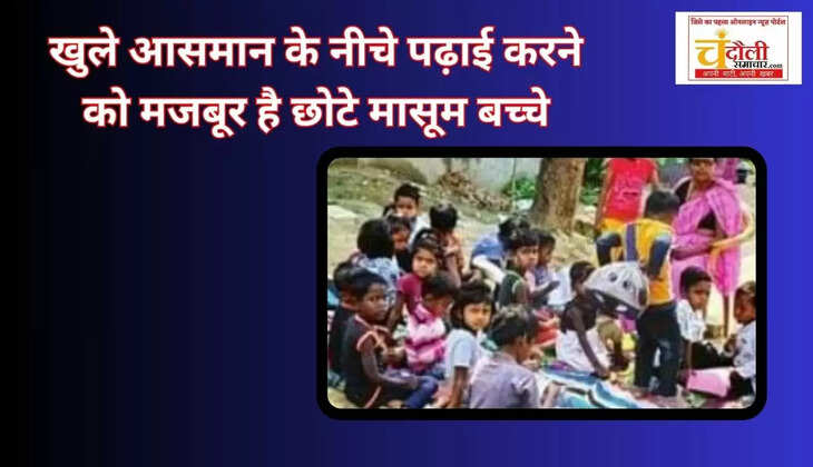 स्कूल के बाहर खुले आसमान के नीचे पढ़ाई करने को मजबूर है छोटे मासूम बच्चे