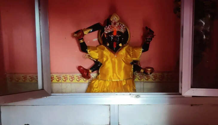 काली माता की मूर्ति से सोने की नथिया और पीतल के घंटे चोरी