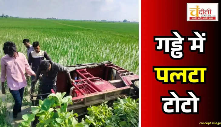 नहर किनारे गड्ढे में पलटा टोटो, घायल चालक पहुंचा अस्पताल