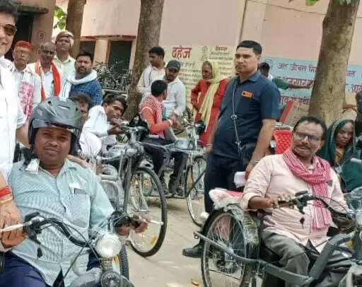 दिव्यागजनों में ट्राई साइकिल और मोटराइज्ड साइकिल का वितरण, दिव्यांगों को मिले शारीरिक उपकरण