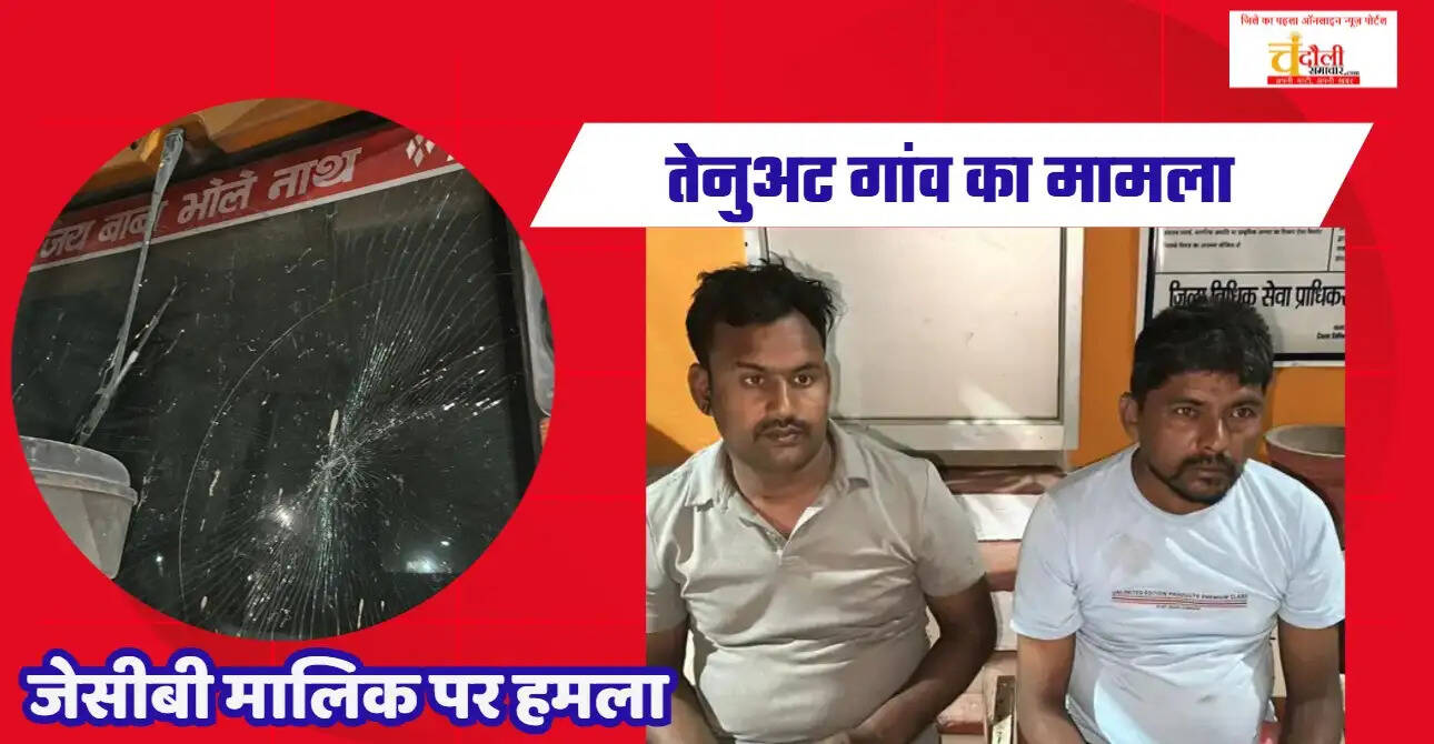 इसी दौरान तेनुअट गांव के एक दर्जन से अधिक लोग मौके पर पहुंचे और उन्होंने लोहे की रॉड और डंडे से हमला कर दिया। इस दौरान कुछ लोगों ने जेसीबी का शीशा तोड़ दिया और वहां पर खड़ी एक मोटरसाइकिल को भी क्षतिग्रस्त कर दिया है।